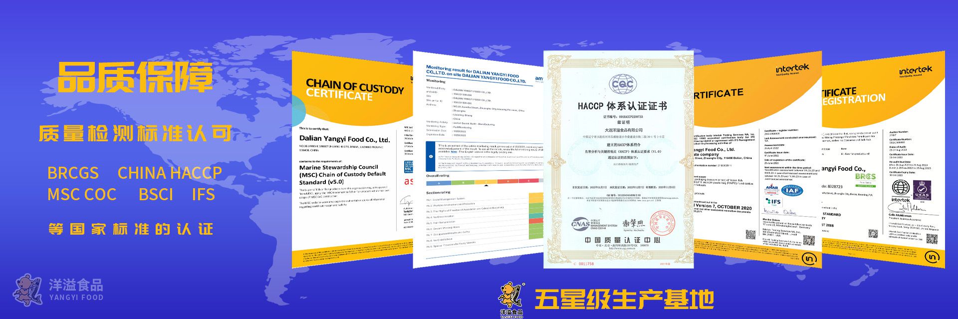 | 公司簡介COMPANY PROFILE                             大連洋溢食品成立于2018年12月25日,坐落于美麗大連莊河市,公司堅信“品質第一,信譽至上;服務第一,合作共贏“的理念,是洋溢生產和發展的可持續方向,經過多年的快速發展和客戶的支持,我們擁有最優秀的生產管理團隊,科學先進的ERP 內部管理系統,洋溢食品以高品質的產品,得到市場和客戶的絕對認可,不僅產品質量獨具市場競爭力,而且已經發展成為最具規模高產能魚片產品的供應商。2022年投資建設3000萬美金的現代化工廠,總面積4萬平方米,職工宿舍200個房間,日冷藏儲存1.5萬噸,五個獨立生產車間,員工近千人,可實現年加工原料產量4萬余噸:分別為狹鱈生產線,真...